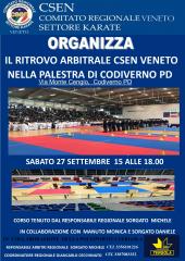 Il Settore Karate del Comitato Regionale Veneto CSEN organizza un ritrovo arbitrale rivolto agli ufficiali di gara e ai referenti del settore. L'incontro si svolgerà sabato 15 Novembre 2025 , dalle ore 15.00 alle 18.00 , presso la Palestra di Codiverno , in Via Monte Cengio – Codiverno (PD).