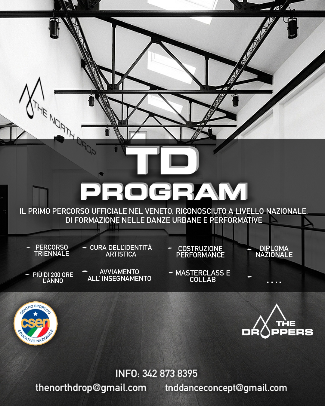 L’ASD The North Drop sotto la guida della Presidente e coreografa Isabella Pettenuzzo, punta a trasformare l'attuale offerta formativa per le danze urbane in una vera e propria Accademia, con l'obiettivo di rilasciare una certificazione ufficiale CSEN al termine del percorso.